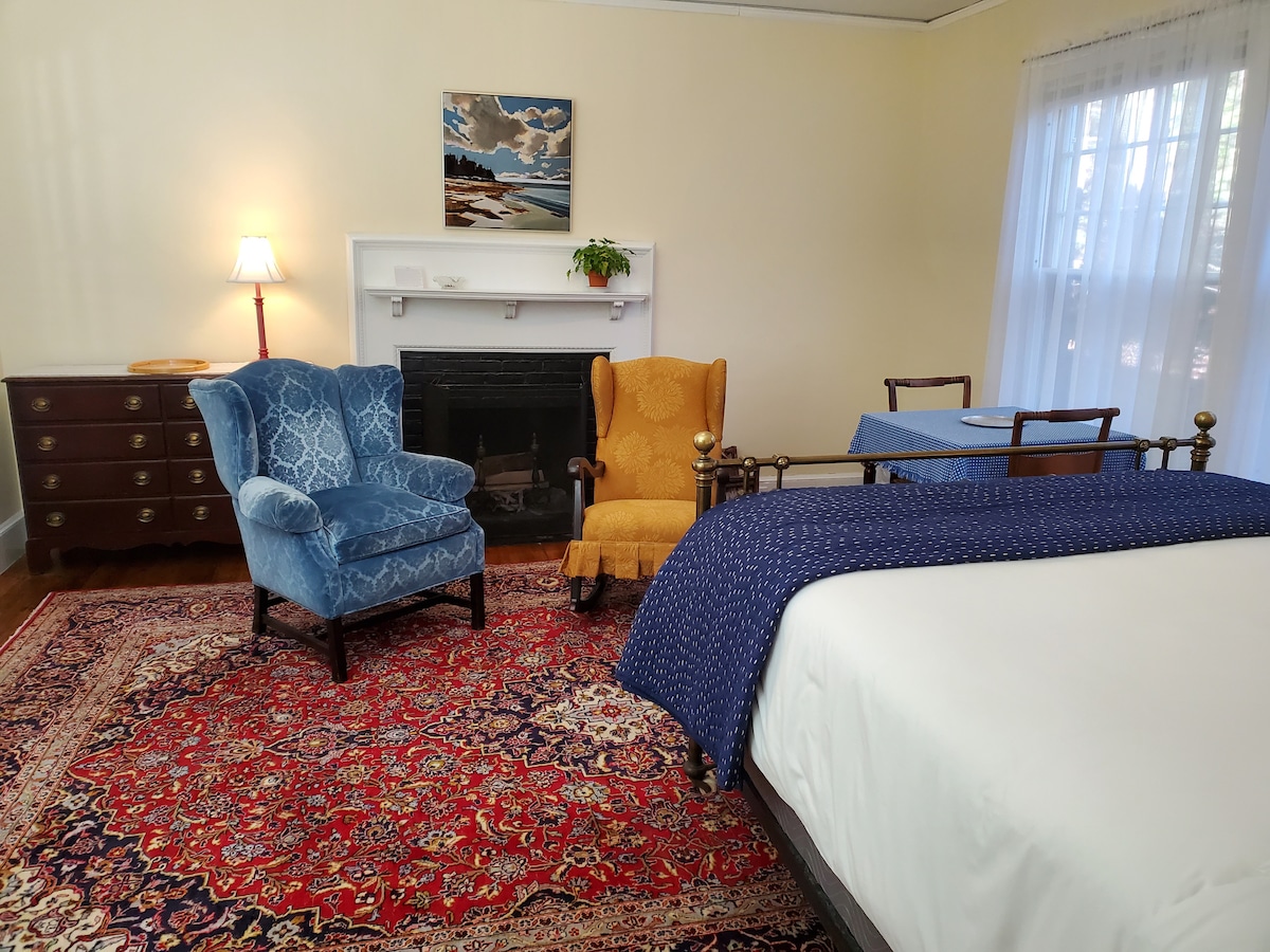 Harbourside Inn is within walking distance to the village of Northeast Harbor and the Marina for shopping, dining and day trips on the ferry to the Cranberry Islands. Located in an 1888 Inn, we are a quiet place within nature to unwind and rest. This private room has a queen size bed, private bath, fireplace, and a kitchenette. Accommodates two people.
