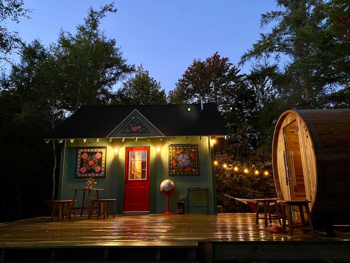 Our family is excited to share our tiny house with you! Located on our artist collective farm, this is our favorite place on earth. It’s off grid, cottage core, and has a beautiful & fragrant cedar sauna. We are 27 minutes from Acadia National Park and surrounded by truly gorgeous local beaches. We offer super comfy beds, an outdoor shower, twinkle lights, summer nights filled with fireflies, bright maples in the fall, and cozy winter movie nights in a bed alcove like on a boat.