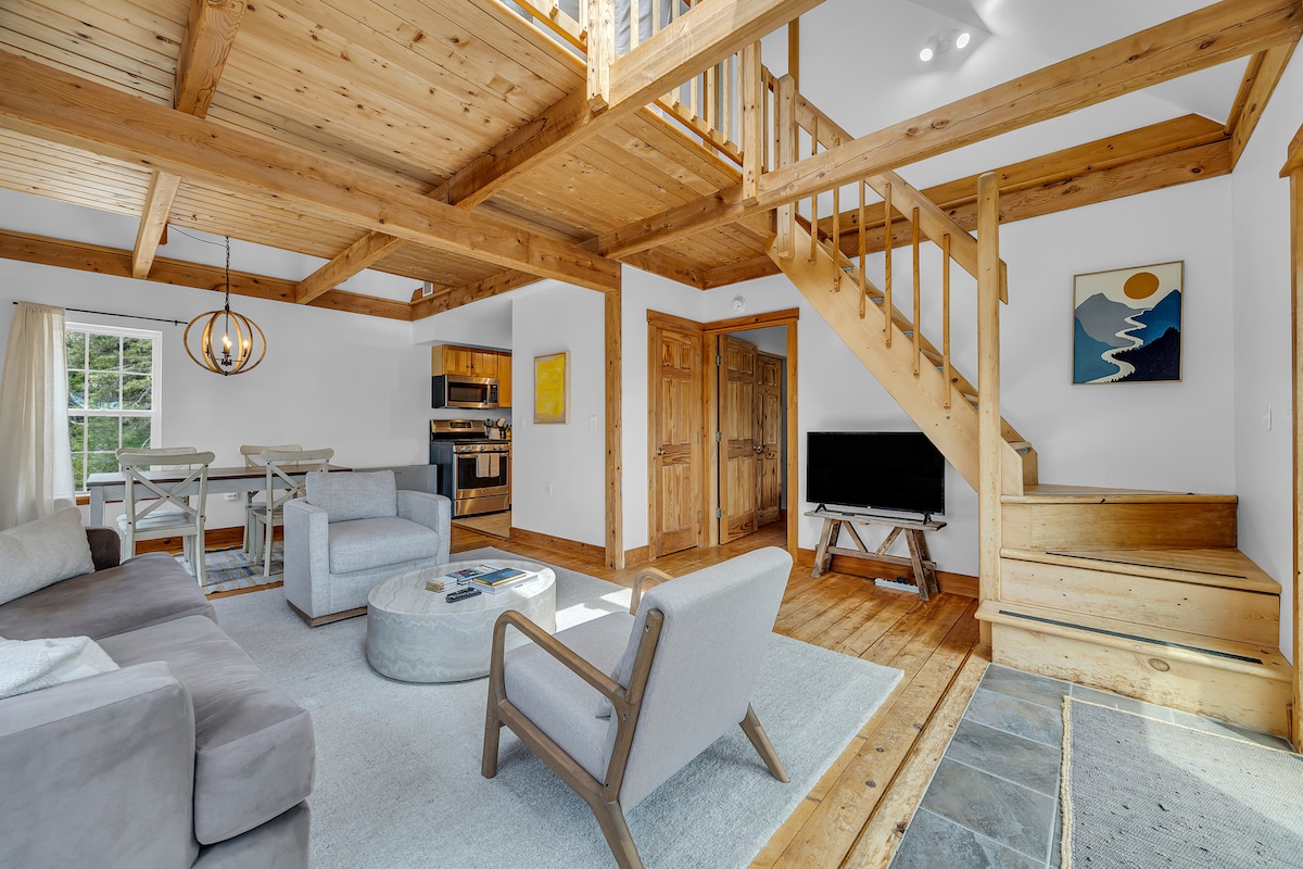 Spacious and bright, this private entrance apartment in the historic Southwest Harbor dance hall features the original hardwood floors and 20-ft ceilings. A block from the harbor, enjoy strolls along Shore Rd. with breathtaking views of Somes Sound! Acadia National Park is right outside, just a mile to Seawall, 3 miles to Wonderland & Ship Harbor, and 5 miles to Echo Lake Beach, Acadia Mountain, & Bass Harbor Lighthouse. Conveniently located 2 minutes to restaurants and shopping in town.