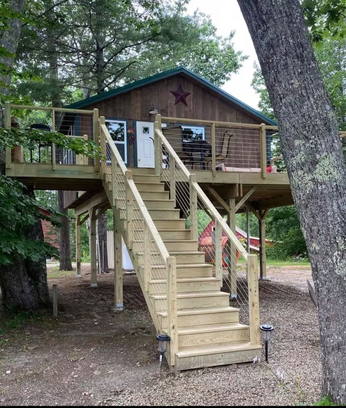 Enjoy the peaceful tranquility that Maine offers, with the comforts and amenities of Wild Acadia Camping Resort at your fingertips, and the wonders of Acadia National Park just minutes away! In the summer season rental includes full access to the Fun Zone and Water Park. The cabin has a private queen bedroom, two bunk beds in a pass-through bedroom, as well as a large loft space with two twin mattresses. Plenty of sleeping options for your stay!
