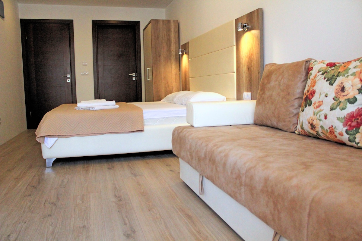 Спокойное жилье для расслабленного семейного отдыха, в дали от шумов клубов и ресторанов Сутоморе. В 15 минутах ходьбы до моря - 3 пляжа городской, Малевик и Штербине. В апартаментах есть все необходимое для комфортного отдыха собственная кухня со всем необходимым, ванная комната, во дворе зона барбекю с обеденной зоной. Доступная парковка.
