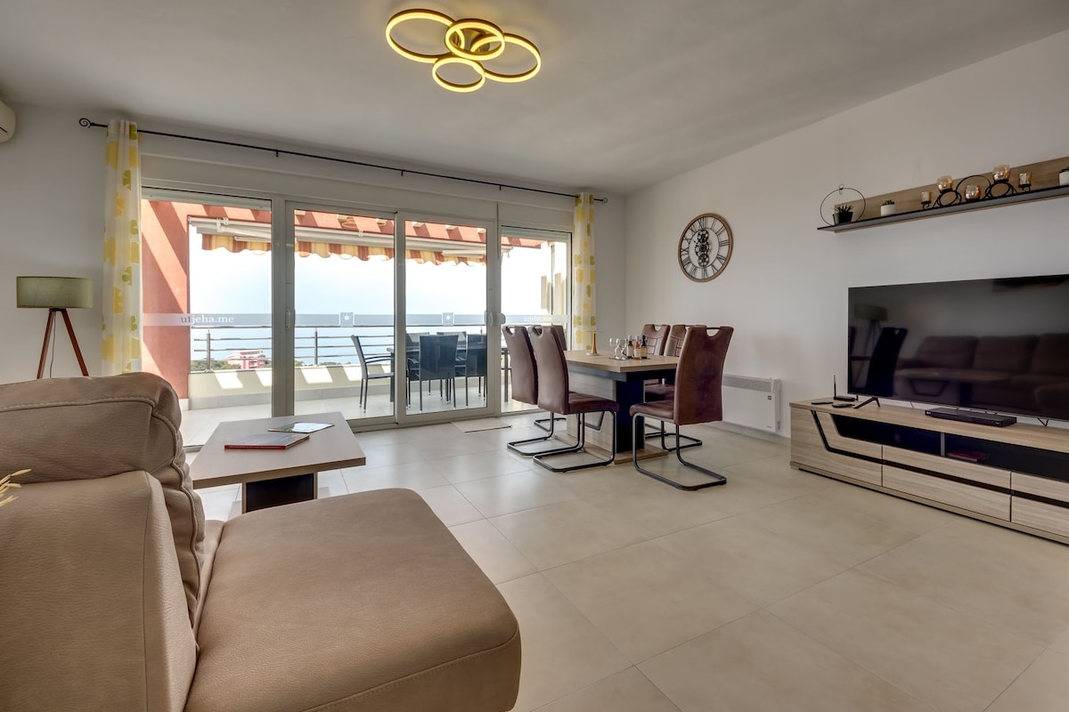 🏡 Modern Apartment Sarah | Sea & Mountain View | City Center 🛏 1 Bedroom · 🛁 1 Bathroom · 🏙 8th Floor · 🧑🤝🧑 Up to 4 Guests · 🌊 10 min walk to beach Welcome to Apartment Sarah, a modern and stylish retreat located in a brand new building in the heart of the city. Just a 10-minute walk from the beach, this 8th-floor apartment offers panoramic views of both the sea and the mountains, giving you the best of both worlds.