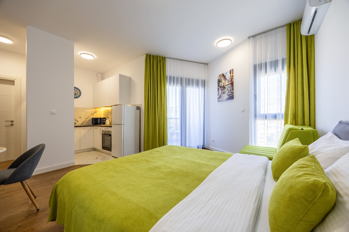 You will have a pleasant stay in this modern and newly decorated apartment, located in Bar, Susanj, with only 900 meters to the first beach , with sea views and terraces. This modern apartment with air conditioning, free WIFI has also a free parking spot. What makes this apartments special is Private Sauna and Jacuzzi-(on the Terasse)with a perfect sea view On the big terasse with modern furniture, so you can enjoy making your favorite dishes with friends or family Breakfast is available for €9