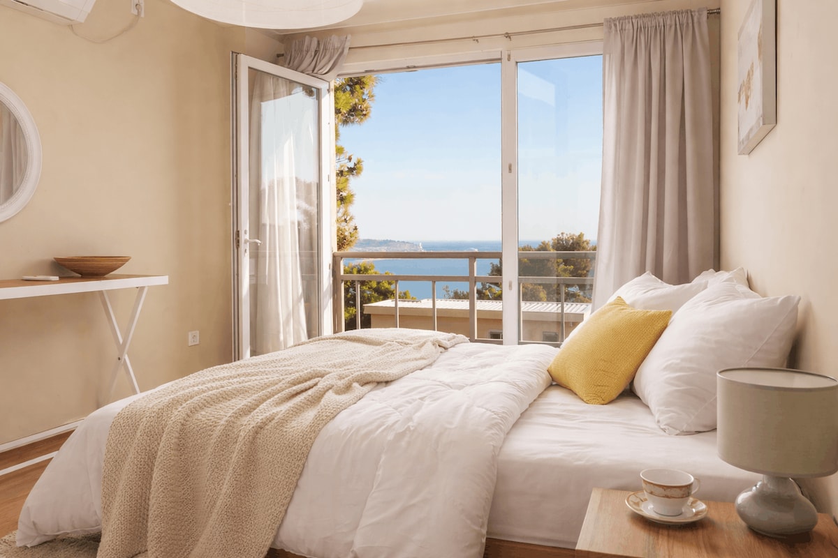 Spacious apartment with a terrace and sea view, located in a quiet green neighborhood on a hill. Easy to reach by car, with free parking available. Inside: two bedrooms, kitchen, shower, washing machine, air conditioning, and Wi-Fi. The beach is 5–7 minutes away by car, walking is also possible. Perfect for a family or friends who value peace and a beautiful view.