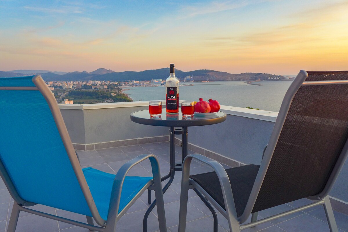 This is a studio apartment located in Sutomore just 10 min walk from the beach. It is a part of a apartment building complex that has 8 apartments similar to this one. This beautiful cozy corner apt has a queen sized bed, bunks beds, kitchenette, dinning table, big closet, big bathroom and a double sized balcony with couch chairs perfect for a morning coffee and a summer breeze chill.