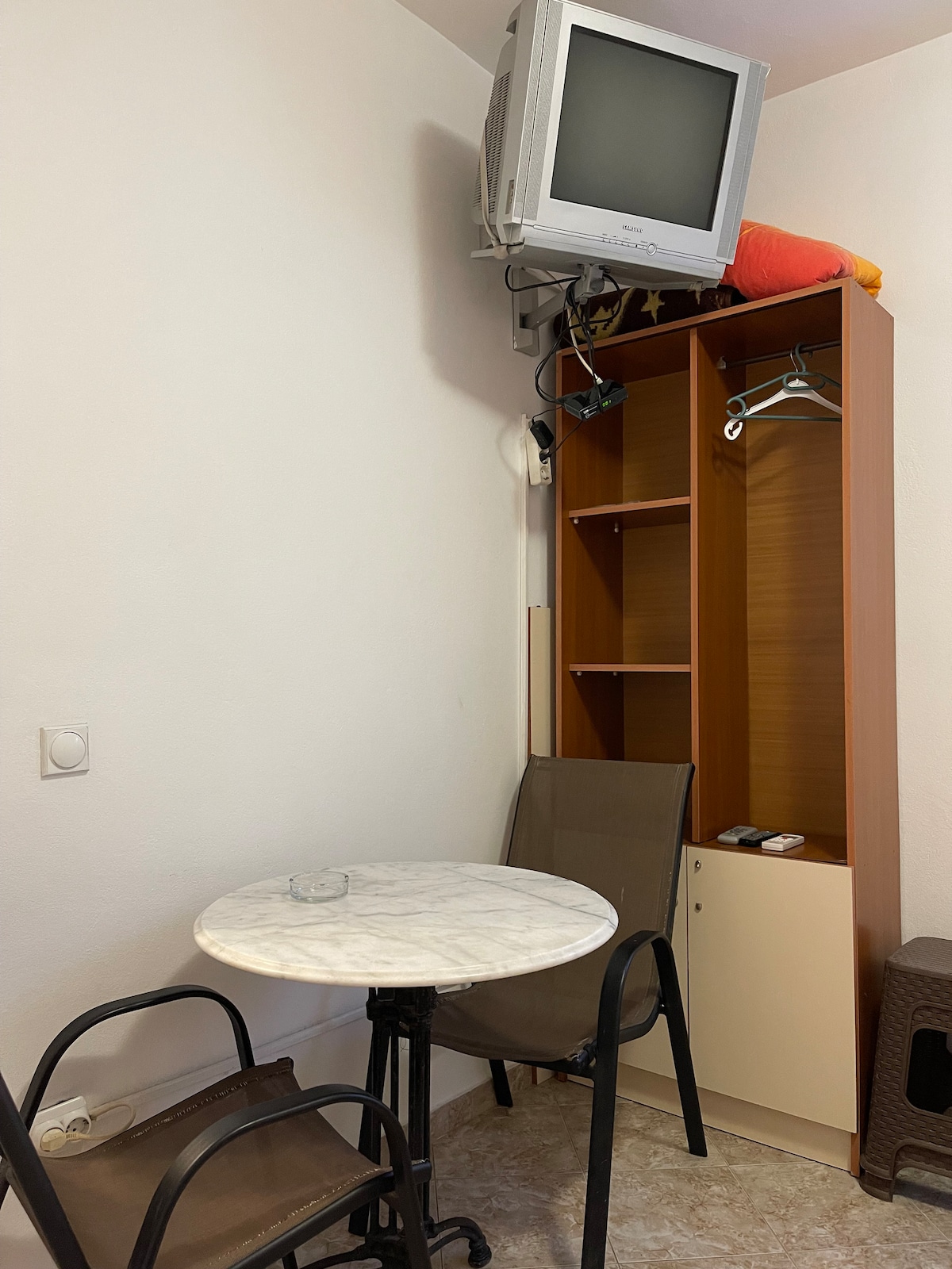Cozy double-room apartments for 4 people. There are 1 double bed and 2 single beds inside. Apartment is equipped with own kitchen, bathroom, TV, air conditioner and free Wi-Fi. There are only 5-7 min. of walking to reach the beach. The nearest product shop and a restaurant with a local food - in 3 min. The apartment is surrounded by Adriatic garden with BBQ place.