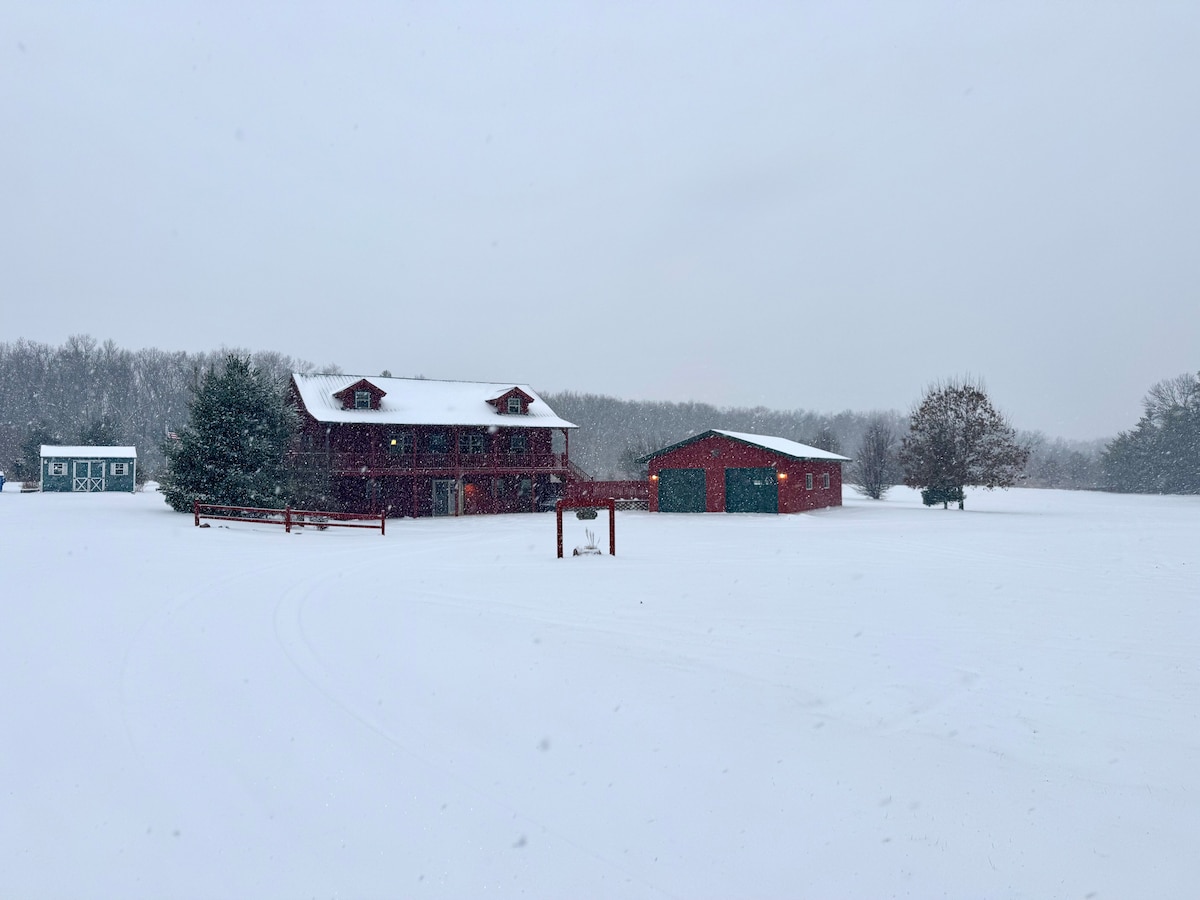 Get lost in nature and stay where the magic grows on a real Christmas tree farm! Situated on rolling hills below the Baraboo bluffs, this 125 acre farm and nature preserve has several miles of hike/bike/ski trails, a private lake and two creeks. Modern home in a quiet rural neighborhood. Easy drive on beautiful country roads to the many attractions in the area--less than 10 minutes to Devil's Lake State Park, Lake Wisconsin as well as Devil's Head & Cascade ski areas.