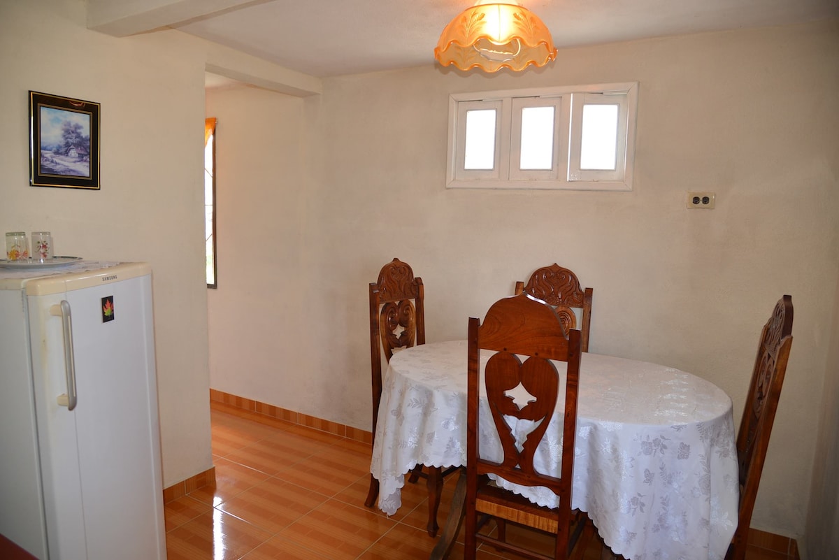 Casa al primo piano, semplice ma accogliente, adatta per 2/3 persone, a 10 minuti di cammino dal centro della città di Baracoa. Bar e ristoranti vicino, come vicini sono il mare e gli incontaminati fiumi di questa stupenda cittadina. Potrete spostarvi viaggiando su carri trainati da cavalli o, più modernamente, con auto, moto o con due nuove moutain bike a noleggio. Venite, sarò a vostra disposizione per offrirvi una vacanza indimenticabile. A presto, Michele