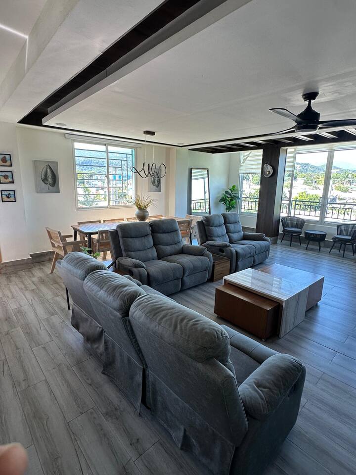 Relax with the whole family at this peaceful place to stay. Disfruta de nuestra impresionante vista al Mar Caribe, rodeados de las verdes montañas. Un lugar espacioso y con todas las comodidades para que te sientas relajado y tranquilo junto a amigos y familia. A solo 17 minutos del centro de la ciudad de Barahona; a 8 minutos de la Playa el Quemaito y a 8 minutos del río Bahoruco. Disfruta nuestra piscina infinita, Jacuzzi y BBQ.