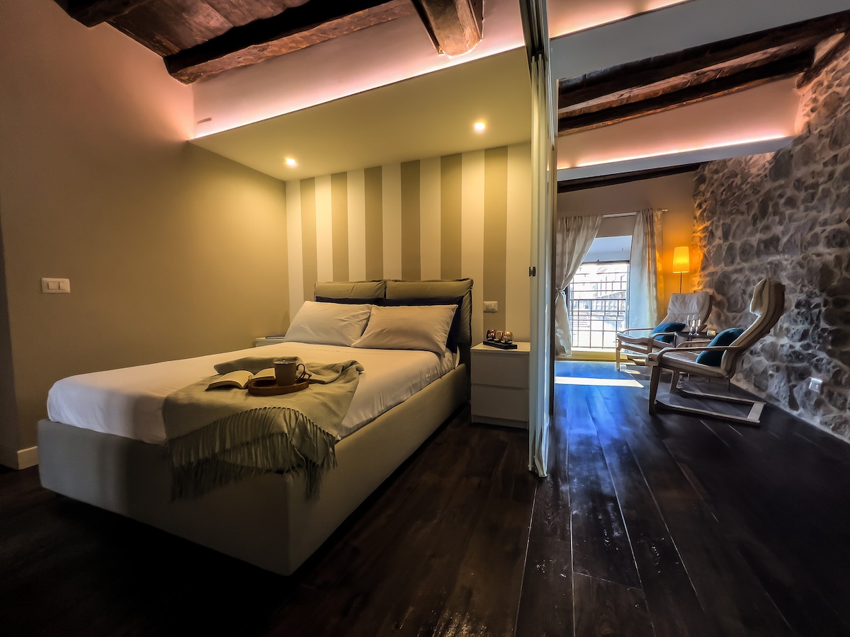 Enjoy the unique experience of staying on Lake Bracciano in a historic residence with lake views, a fireplace and a hot tub with chromotherapy for moments of pure relaxation: all accompanied by a small selection of local wines to complete the atmosphere. Casa Mabi is a refined retreat perfect for couples seeking tranquillity and romance. In the heart of the historic centre of Anguillara, it is within walking distance and surrounded by typical restaurants of the village.