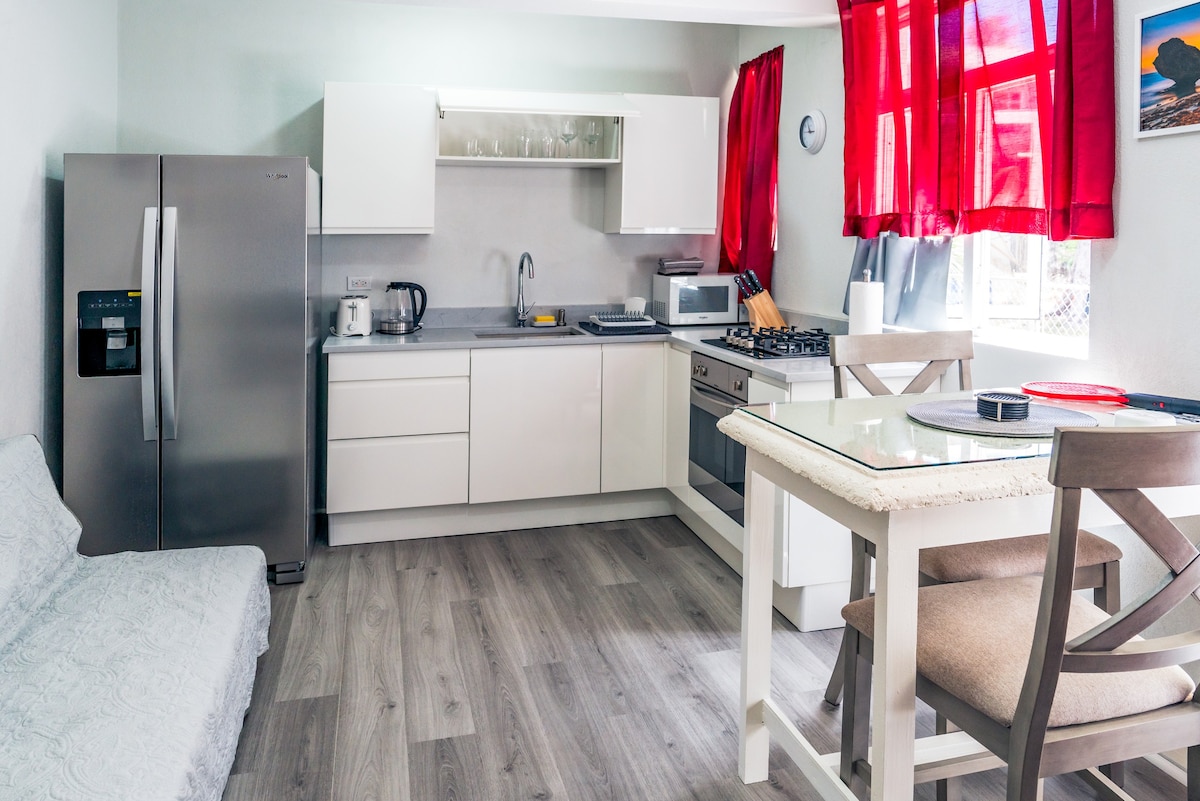 Welcome to our large studio cottage, blending Caribbean charm with modern style. The contemporary interior, air-conditioned comfort, and sleek kitchen and bathroom ensure a delightful stay. Your private entrance opens to an exclusive garden. Just a short stroll to Pebbles Beach and Carlisle Bay, it offers easy access to stunning coastal spots. Experience the best of both worlds: modern living in a peaceful Caribbean setting, embraced by the warmth of a hospitable family in beautiful Barbados.