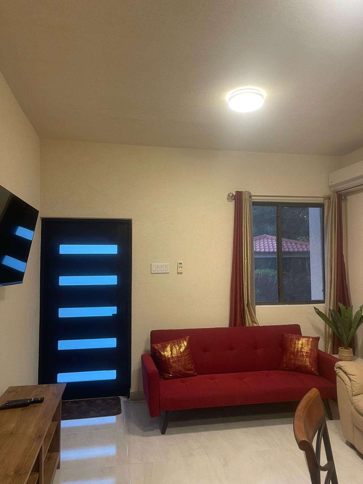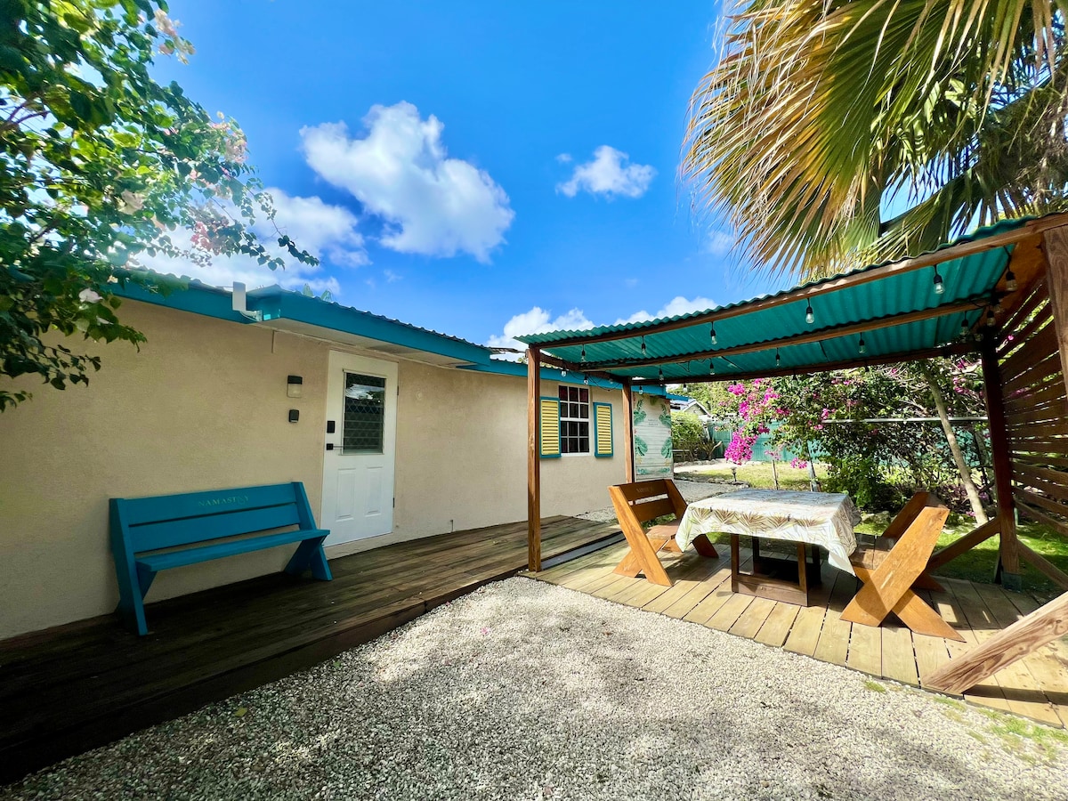 A cozy studio apartment located behind a private residence in a quiet neighborhood that is just minutes away from the wonderful blue Caribbean Sea, Bustling nightlife, Sumptuous restaurants and many other amenities. There is a Fully equipped kitchen, a washing machine as well as a BBQ located at the property. The space is Air Conditioned and has a king sized bed as well as a futon that folds down into a single bed. There is a safe located in the apartment.