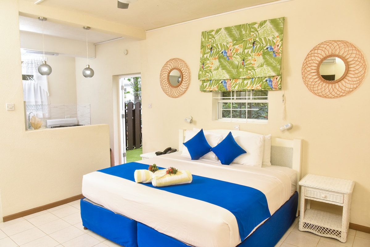 Each of our 23 Superior Studios comes with a private balcony with an exceptional view. These open plan units are cozy and allow you to enjoy the beauty of the Caribbean Sea without even leaving your bed. These rooms are perfect for couples or singles as they are equipped with one large double bed or two twin beds. Additional features include: in-room safe, bathroom with walk-in rain shower and complimentary bath amenities.