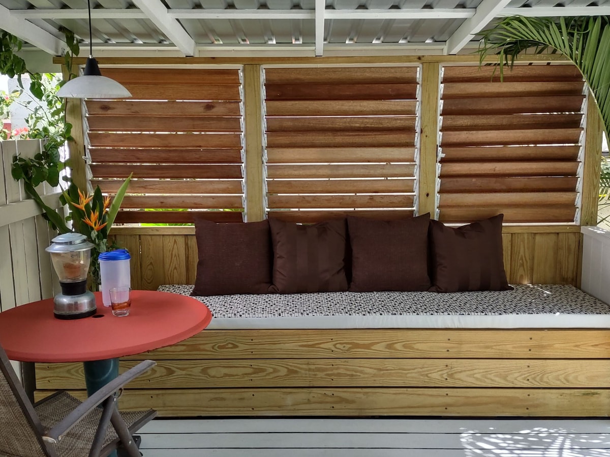 This is a cozy little accommodation with a Spanish type style. Perfect for a romantic getaway or just someone visiting on their own to see the island. It is a safe neighborhood that is central but very quiet. For larger parties there is also a studio apartment on the property that can be rented increasing the total occupancy potential to 5 persons. The studio has a king bed and a futon. It is called Footsteps to the Beach.
