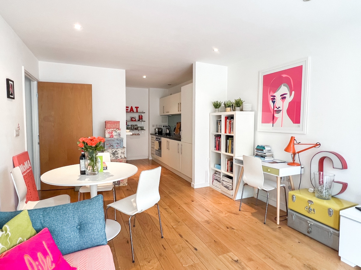 Stylish apartment in a quiet area of trendy Shoreditch. This cool, comfortable haven provides you with all that you need. Central location with secure & modern facilities, a private balcony and moments from all London has to offer! Ideal for remote working with excellent WiFi/broadband. * No Air conditioning* **Enhanced Deep Cleaning Routine** *freezer not in use*