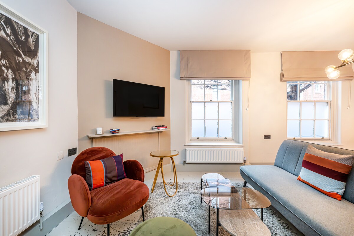 Contemporary two bedroom flat near Farringdon station. It is a newly refurbished space within a beautiful 19th century building on the corner of Sekforde Street and Woodbridge Street. The flat is adjacent to The Sekforde, a popular pub. This does tend to get busy with the possibility of being noisy. You will have your own private entrance. Excellent location for bus links, overground, and underground stations. This is an ideal space for short-stays!