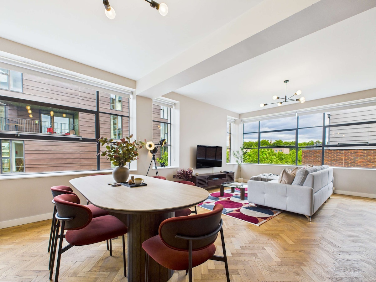 Enjoy a stylish stay in this centrally located warehouse flat in the heart of London. Flooded with natural light, this spacious 3-bedroom, 2-bathroom home offers all the amenities you need for a comfortable home away from home. 5-minute walk from Shoreditch High Street and 10 minutes to Liverpool Street Station, you’ll have easy access to the entire city. London’s best restaurants, bars, cafés, and the iconic Brick Lane Market are just steps away. Discounts available for stays of 1+ weeks.
