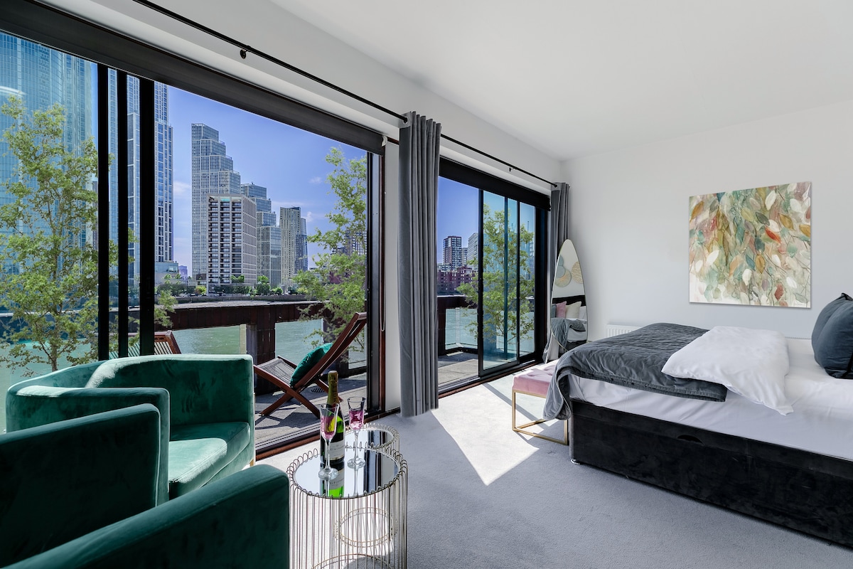Check out this stunning waterside Family&Friends Home with overwhelming views of the Thames. The interior is super stylish, a terrace with soothing river views is a highlight Imagine waking up in one of the three bedrooms, each individually designed with river views. Two bathrooms- modern &sleek, one offering a bathtub, the other featuring a spacious walk-in shower. The fully equipped kitchen comes with all the essentials to enjoy your culinary creations. Sounds like a place you'd love to stay?