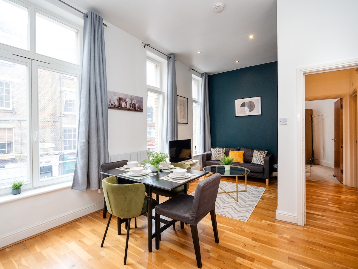 Welcome to a stylish and modern 1-bedroom apartment in the heart of Clerkenwell. Ideal for couples, solo travellers, or small groups, the apartment sleeps up to 3 guests with a king-size bed and a discreet Murphy bed. Set within a secure building, this is a calm and comfortable base just moments from Old Street, Exmouth Market, and the Barbican.