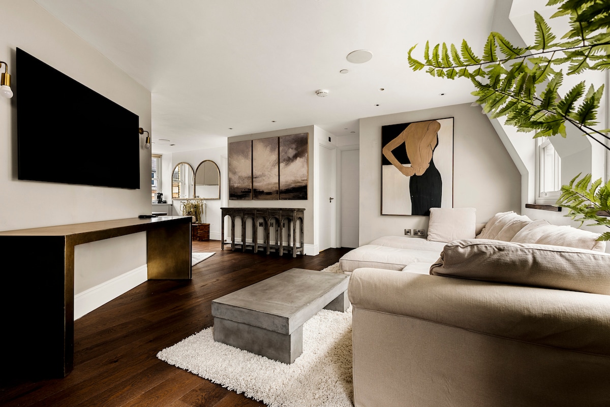 An open-plan converted period apartment set on the top two floors of a Georgian house, "Woodbridge House" dating back to the 1760s. With room to accommodate four guests, it consists of a very spacious master bedroom & ensuite with a Super- King bed. The second room is small and consists of a standard double bed with small chest of drawers which is able to accommodate two adults or kids if needed. Centrally located in what has become one of the most fashionable and sought-after neighbourhoods in central London, with numerous high class restaurants and bars in the neighbourhood as well as walking distance to the best of what London has to offer. HOME HIGHLIGHTS • Open-plan living • Fantastic location • High-Spec amenities • Spacious and bright ROOMS A huge living room with Gas fireplace and 55 inch LED TV and kitchen greets you as you enter the flat. Nice outlook over some of the period buildings within this historic conservation area including the church clock tower. THE KITCHEN Designer kitchen with all integrated appliances, dishwasher, washing machine, under-bench microwave, cooker, hob, wine fridge (with complimentary bottle of red or white, let me know your preference), instant boiling water tap. LIVING / DINING AREA A bespoke, reclaimed dining table seats 6 people. THE MAIN BATHROOM A contemporary bathroom off the main space with a bath/shower, WC and basin. All Towels Provided. Complimentary Toiletries provided. MASTER BEDROOM Located on the top floor,Huge Master bedroom with a Super-King size bed, built in wardrobes with safe. All Hangers provided. ENSUITE SHOWER ROOM Open plan designer shower room on the top floor SECOND BEDROOM Smaller second bedroom with a double bed and a small chest of drawers. Entire flat is yours for the duration of your stay I live very close-by and will give you all my contact details so will be able to assist you with anything that you may need during your stay. The converted apartment is on the two top floors of a Georgian house in Clerkenwell. Clerkenwell is Londoners' London - a creative community, slap bang in Londons heart. This stylish apartment is nestled amongst the medieval city gates, Michelin starred restaurants, historic pubs and epicurean cafes. The neighbourhood where East London meets West London so pick a direction and you'll soon come across Exmouth Market or St Pauls, The Barbican or British Museum or the theatres of the West End. Located just 10 minute walk to Farringdon Tube located on The Circle Line, Distrcit Line, Hammersmith & City Line swell as the overland lines, Farringdon opens up the whole of London to you. Becoming one of the biggest stations in London. Also direct line to Gatwick & Luton Airports. Walking distance to Covent Garden, the West End, Soho, St Pauls, British Museum, Oxford/Regent Street, Shoreditch. - Designer remote control Gas Fireplace - High Level security steel front door - Fully central heated - 55 inch LED TV with DVD player - Wireless Internet - Instant boiling water tap - Travel cot available on demand - Final cleaning included with booking. Cleaning during stay is available (for a fee)
