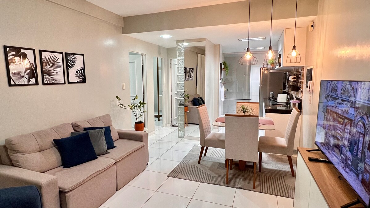 Apartamento moderno com 56 m2 de área privativa + garagem. Móveis e eletrodomésticos novos. Os 2 quartos possuem ar condicionado , sendo 1 com banheiro reversível. A sala tem sofá-cama, TV, ar condicionado, mesa com 4 cadeiras. Tem uma varanda privativa com vista para área nobre de Belém, cenário perfeito para o seu café da manhã . A cozinha é completa com fogão tipo cook top, forno de microondas, cafeteira, bebedouro com água gelada geladeira. Possui Wi-Fi e TV para entretenimentos sem limites