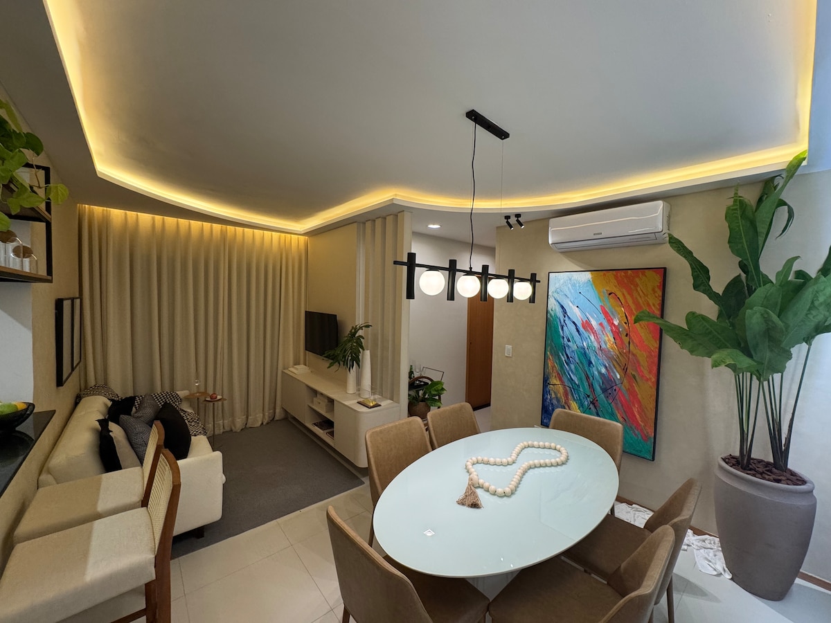 Apartamento moderno com 56 m2 de área privativa + garagem. Móveis e eletrodomésticos novos. Os 2 quartos possuem ar condicionado , sendo 1 com banheiro reversível. A sala tem sofá-cama, TV, ar condicionado, mesa com 4 cadeiras. Tem uma varanda privativa com vista para área nobre de Belém, cenário perfeito para o seu café da manhã . A cozinha é completa com fogão tipo cook top, forno de microondas, cafeteira, bebedouro com água gelada geladeira. Possui Wi-Fi e TV para entretenimentos sem limites