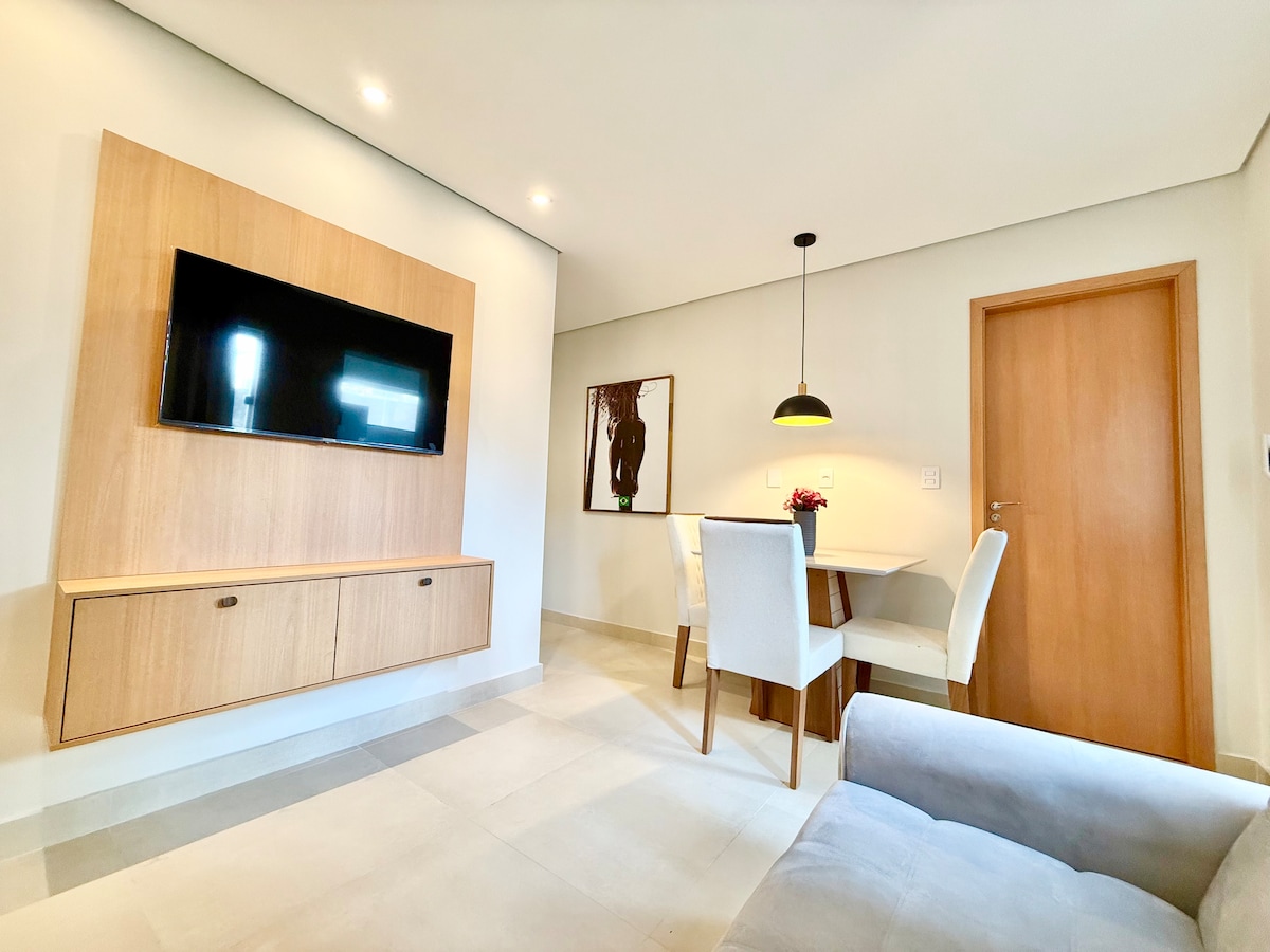 Destaques do apartamento: Duas suítes com cama Queen e ar condicionado split. Cozinha completa e funcional. Área de serviço com máquina de lavar. Sala com sofá cama e ar condicionado. Televisão smart. Rede Wi-Fi disponível. Churrasqueira elétrica na sacada gourmet. Jogo de cama e toalhas disponíveis. Destaques do prédio: 1 vaga de garagem disponível. Piscina adulto e infantil. Churrasqueira. Academia. Brinquedoteca. Parquinho infantil. Portaria 24h para sua segurança e praticidade.