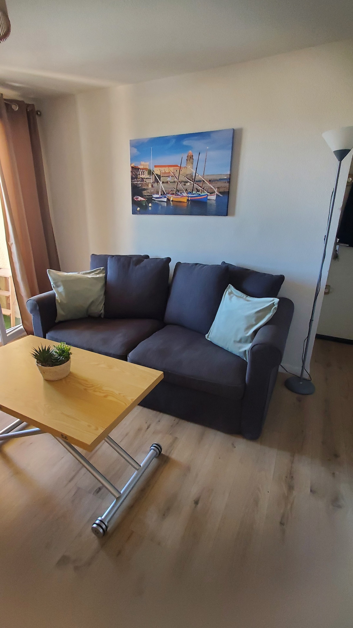 Appartement neuf 27m2 (résidence iones) idéalement situé avec une belle vue sur la mer depuis la terrasse, un accès direct à la plage et à 5min à pied du Lydia, des déferlantes 5min en voiture du marché de Noël Il est au 6ème étage (avec ascenseur) et dispose de places de parking municipales gratuites devant la résidence. L'appartement est équipé d'une climatisation réversible. Il se compose d'une pièce principale avec cuisine équipée, un coin nuit lit 140 cm, un séjour, une salle d'eau.