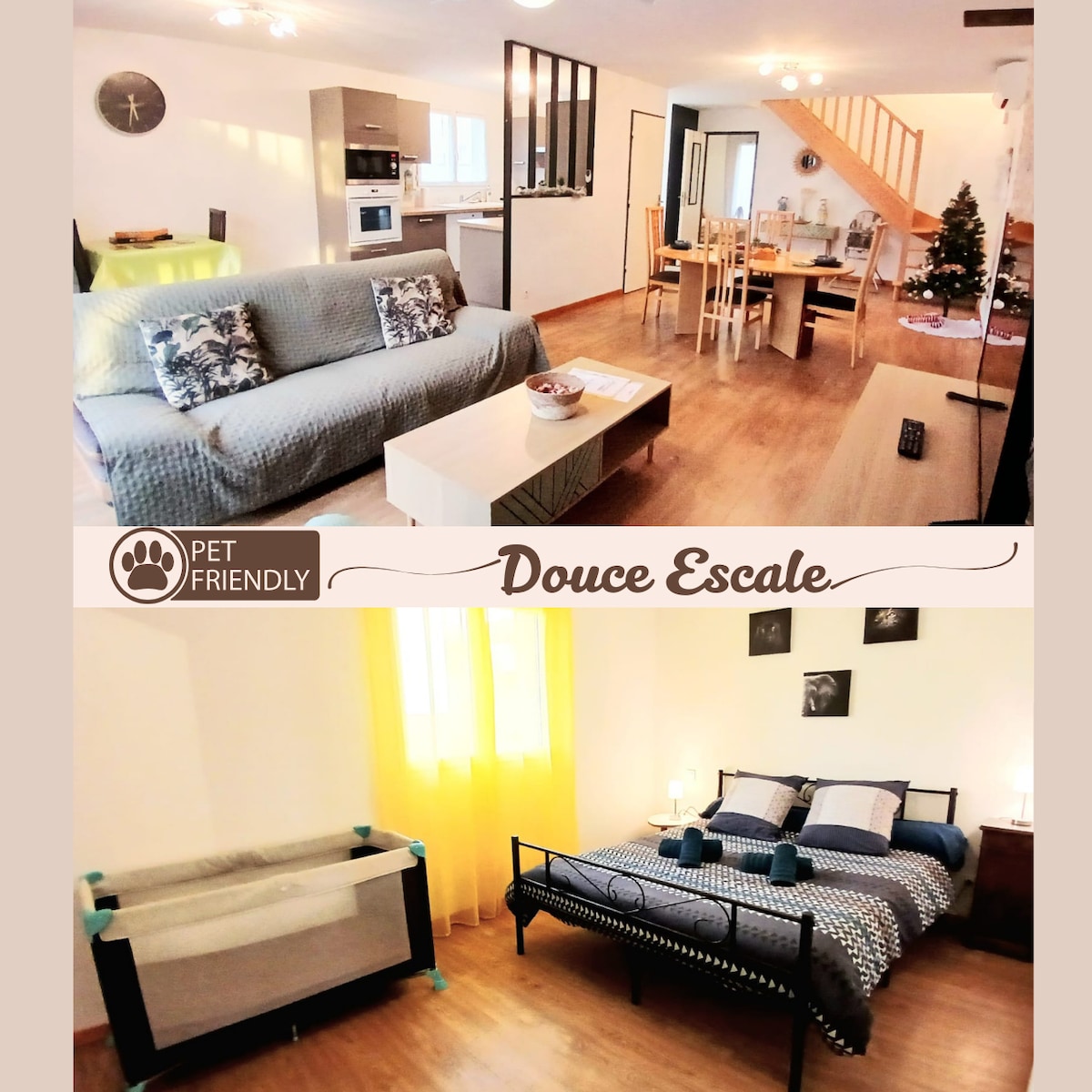 LES FETES ET LES RECEPTIONS NE SONT PAS AUTORISEES, PAR RESPECT DU VOISINAGE Ce logement paisible offre un séjour détente pour toute la famille. Il y a 3 chambres avec lit double, dont 1 avec une salle d'eau , un salon avec canapé convertible, une cuisine toute équipée, une salle de bain avec une baignoire d'angle . Le jardin est en pelouse synthétique. Une très grande terrasse en bois, avec salon de jardin , table de jardin , barbecue. PAS D'ANIMAUX PAS DE FÊTES MERCI DE FUMER A L'EXTÉRIEUR