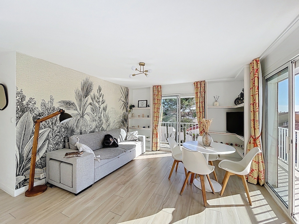 Logement situé au 1er étage sur 1 dans résidence calme avec place de parking attitrée et grande terrasse. A 100 m des premiers commerces de proximités, à 2 minutes de la plage à pied. Équipé du Wifi, d'une climatisation, d'un lave linge, d'un frigo congélateur, d'un four micro onde, d'une grande Télé avec Chromecast. Il dispose d'une chambre avec un lit double neuf et très confortable ainsi qu'un dressing, un canapé convertible dans le séjour. Idéalement placé et entièrement refait à neuf.