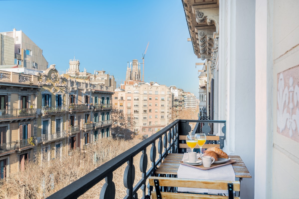Bright, trendy two-bedroom, two-bathroom apartment with balcony in the central Eixample neighbourhood, very close to the Sagrada Familia, ideal for exploring the city on foot. Wi-Fi, TV with international channels and all modern comforts. The ceilings are high and the apartment is full of natural light. The furnishings are stylish and comfortable. The living room ceiling has the original Catalan Art Nouveau decorative moldings. Reception is open from Monday to Sunday from 9AM to 6PM.