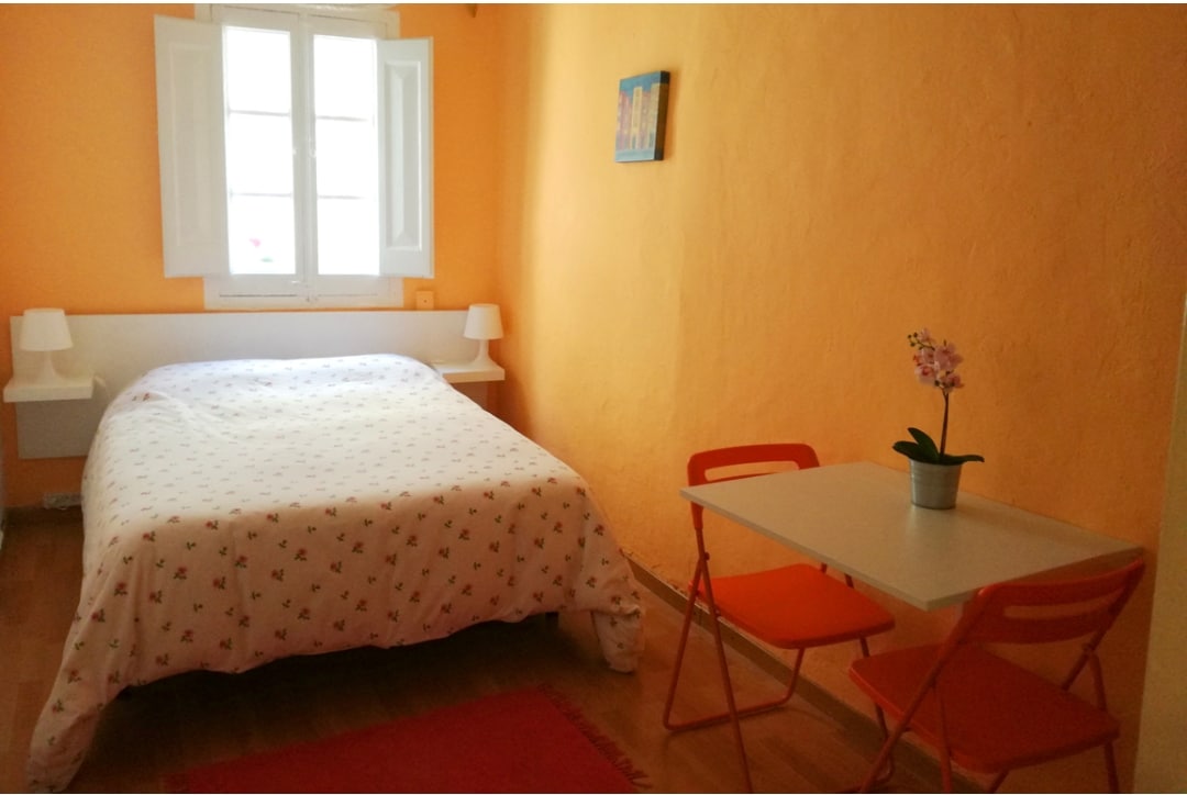 Charming one bedroom boutique apartment (3 beds) with private access to a large sunny rooftop terrace. There is one bedroom with two twin beds (that can be put together to make a king size double bed)and a separate double bed. The apartment has one complete bathroom. Fully air-conditioned with heating in winter and comes with wi-fi internet. Free wifi, fully equipped kitchen, iron, board, hairdryer, amenities, towels, sheets..... Extra cleaning is also available. License, HUTB 004320