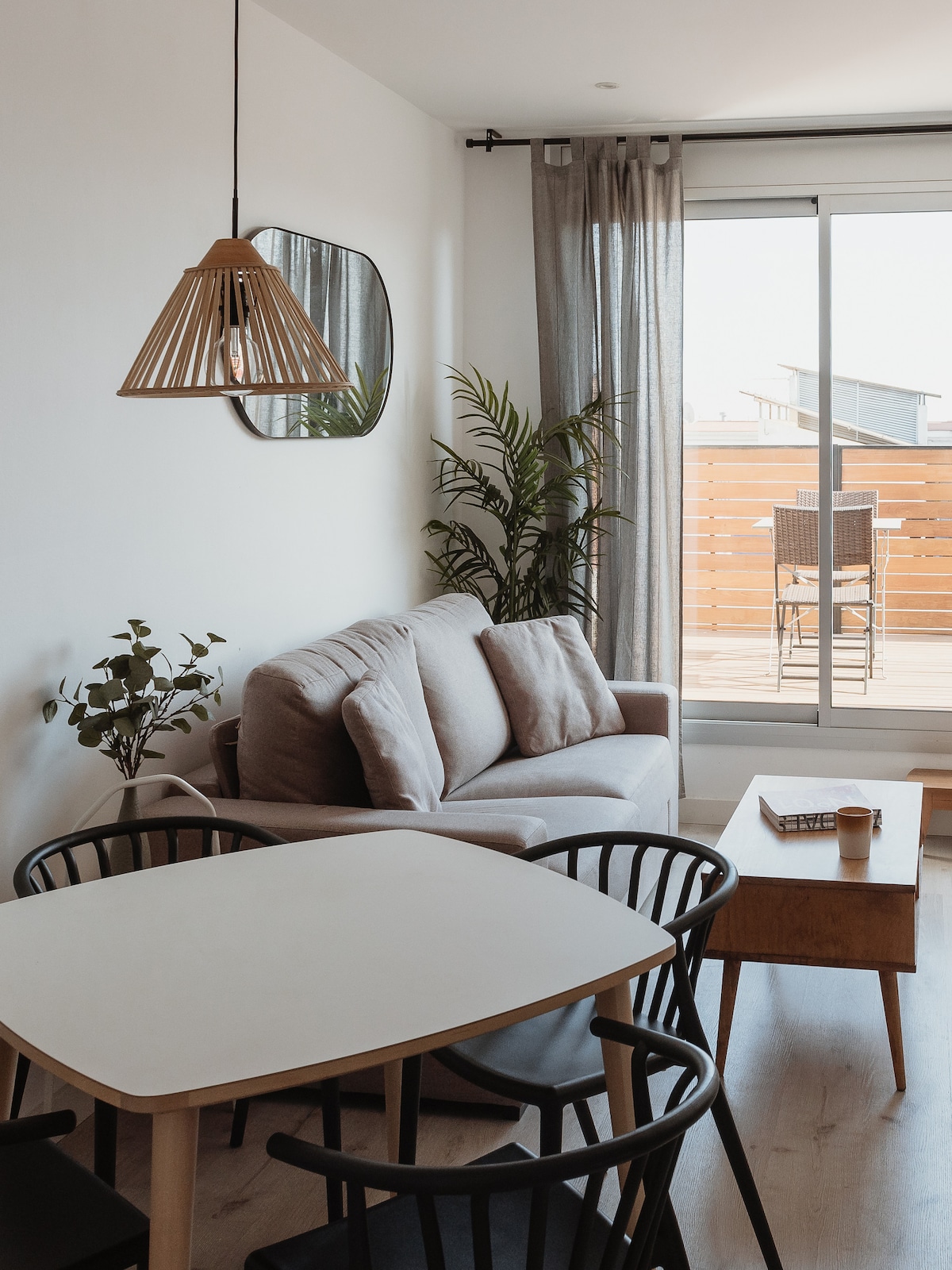 Stylish one-bedroom, one-bathroom apartment in the very central Sant Antoni area, ideal for up to four people. The bedroom has a double bed and there is a double sofa-bed in the living room that can sleep an extra two more people. It combines parquet floors & modern decor and is full of natural light. The apartment has a dining room with a large table, located near the kitchen.