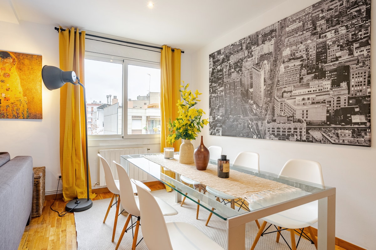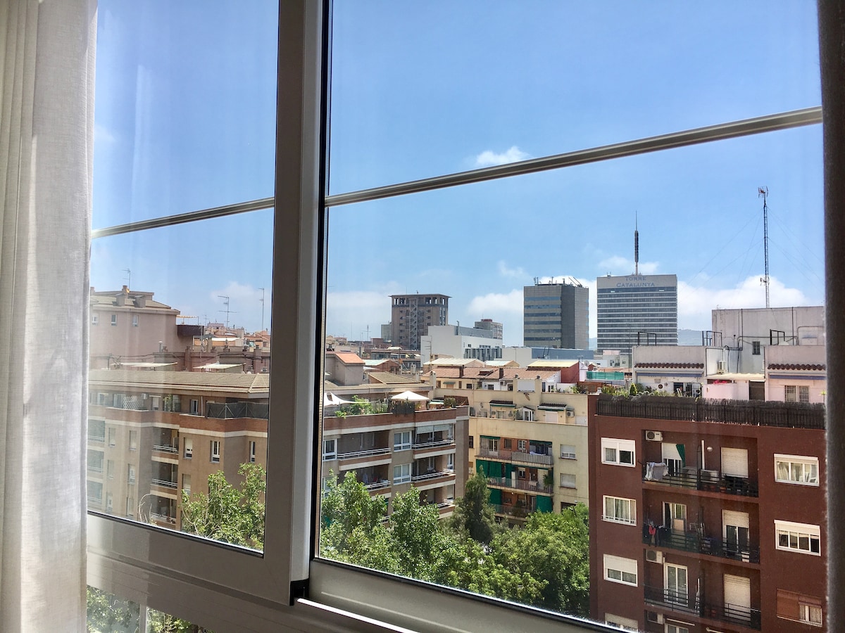 The apartment is located on Barcelona's Gran Via, 10 minutes walking from Plaza Espanya. Direct bus stop to El Prat Airport, quick access to Barcelona city centre by bus and metro. Ideal for trade fairs, concerts at Palau Sant Jordi and general tourism.