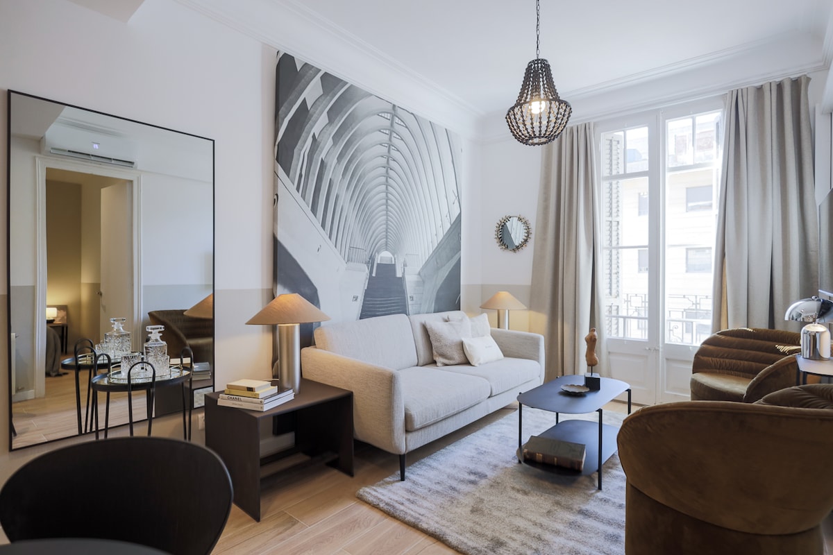 Discover a modern space with white interiors, natural wooden floors, and pops of bright colours. This open space is chic, fully equipped with modern appliances, and great base for enjoying comfortable times in a new city. The apartment has a spacious and bright living room, a sofa bed and a dining area with a table for 8 people. It has three double bedrooms and two full bathrooms. Upon request rooms can be prepared with double or twin beds. Equipped with air conditioning and heating.