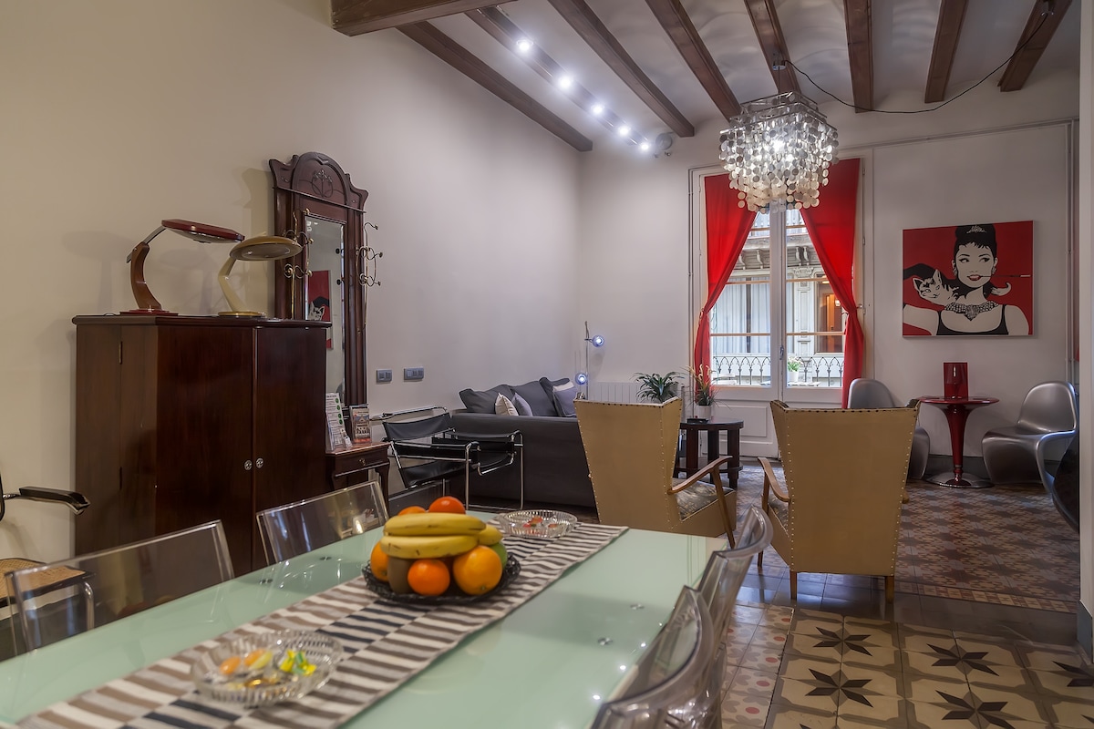 Experience unique atmosphere in this lovely, air-conditioned apartment located in one of the authentic district of Barcelona. It is 3 blocks away from the Passeig de Gràcia and only 10 min away from Casa Battló one of the iconic Gaudi’s buildings. You can find all you need in a walking distance: grocery stores, bars, restaurants, brunch spots. License number HUTB-009015