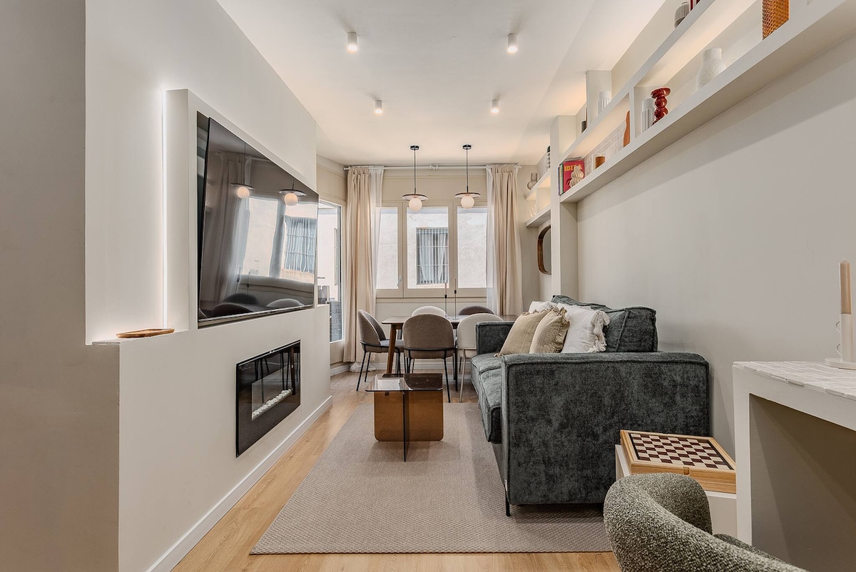 Stylish apartment on a semi-pedestrian street in the iconic Gracia neighborhood, 800 meters from Sagrada Familia and Hospital de Sant Pau, and a 20-minute walk to Parc Güell or Passeig de Gracia. Comfortable, quiet, and elegant, the apartment is fully renovated. It features a queen-size bed, high-quality linens and towels, AC, kitchen, and sofa bed. Enjoy 2 SmartTVs (Netflix, HBO...) and high-speed Wi-Fi. This cozy apartment offers access to a beautiful, dynamic neighborhood from a serene street