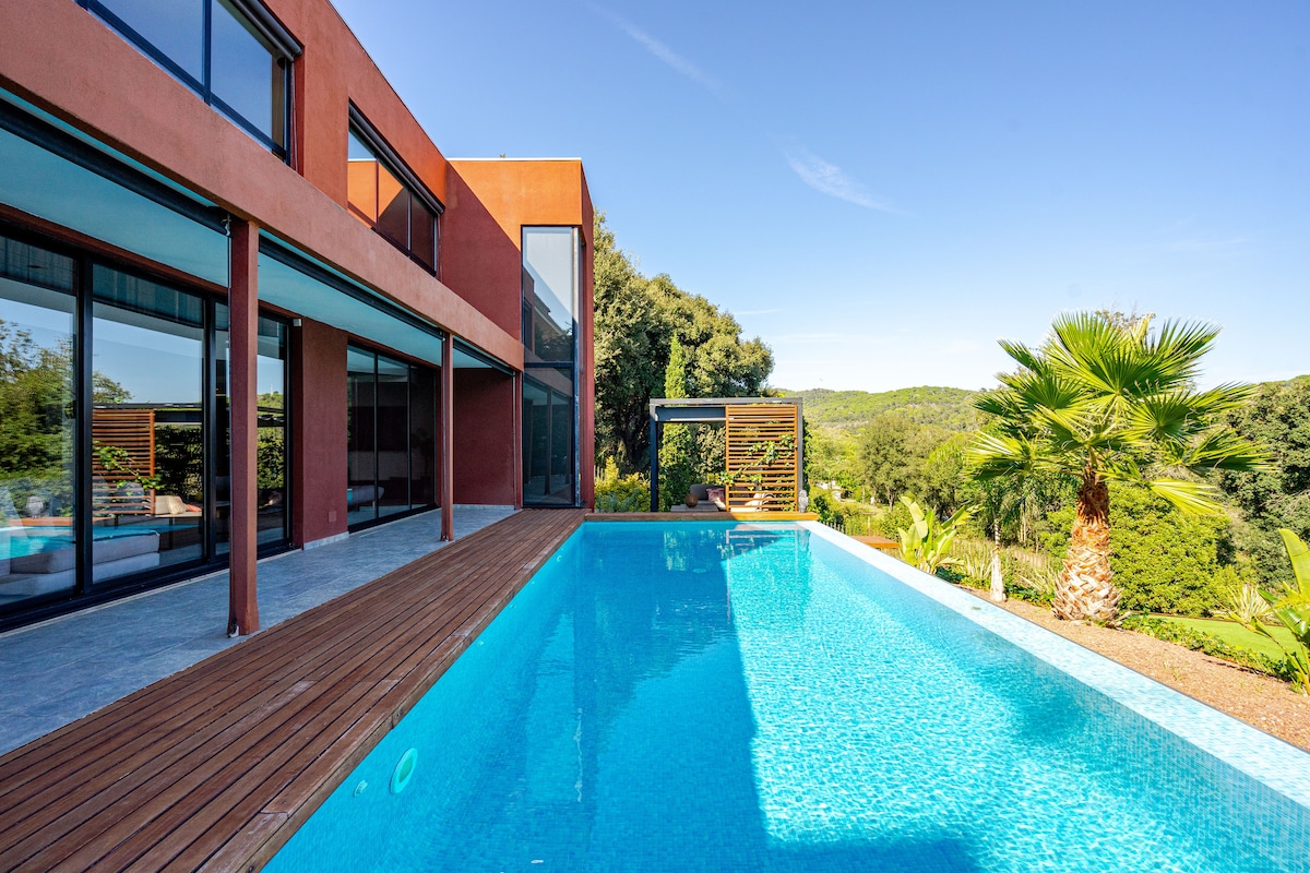 Casa a 20 km de Barcelona, 15 minutos del circuito de Cataluña y 12 minutos de la playa. En su salón tipo loft de casi 100m2 disfrutaras del espacio con doble altura, chimenea de diseño y con unas preciosas vistas panorámicas de la piscina desbordante de agua salada rodeada de naturaleza. Si te gusta disfrutar al aire libre te encantará su precioso jardín y la cocina exterior con barbacoa. Terminantemente prohíbo fiestas o eventos, Sant Verd es una casa para descansar ideal para familias.