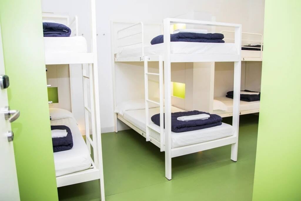 10 Mix Room. (Share room) This room is exterior. No smoking Our dormitories are designed with a touch of Mediterranean flair, complete with airconditioning, personal reading lights, power sockets, and secure lockers for your peace of mind. Age Policy for Dormitories: We welcome guests aged between 18 and 48 in our dormitories. ● Tourist Tax: €7,70 per person, per night. ● Linens are included but we don,t provide towels. ● Towel Rental: €3 ● Special Dinner Nights: €6