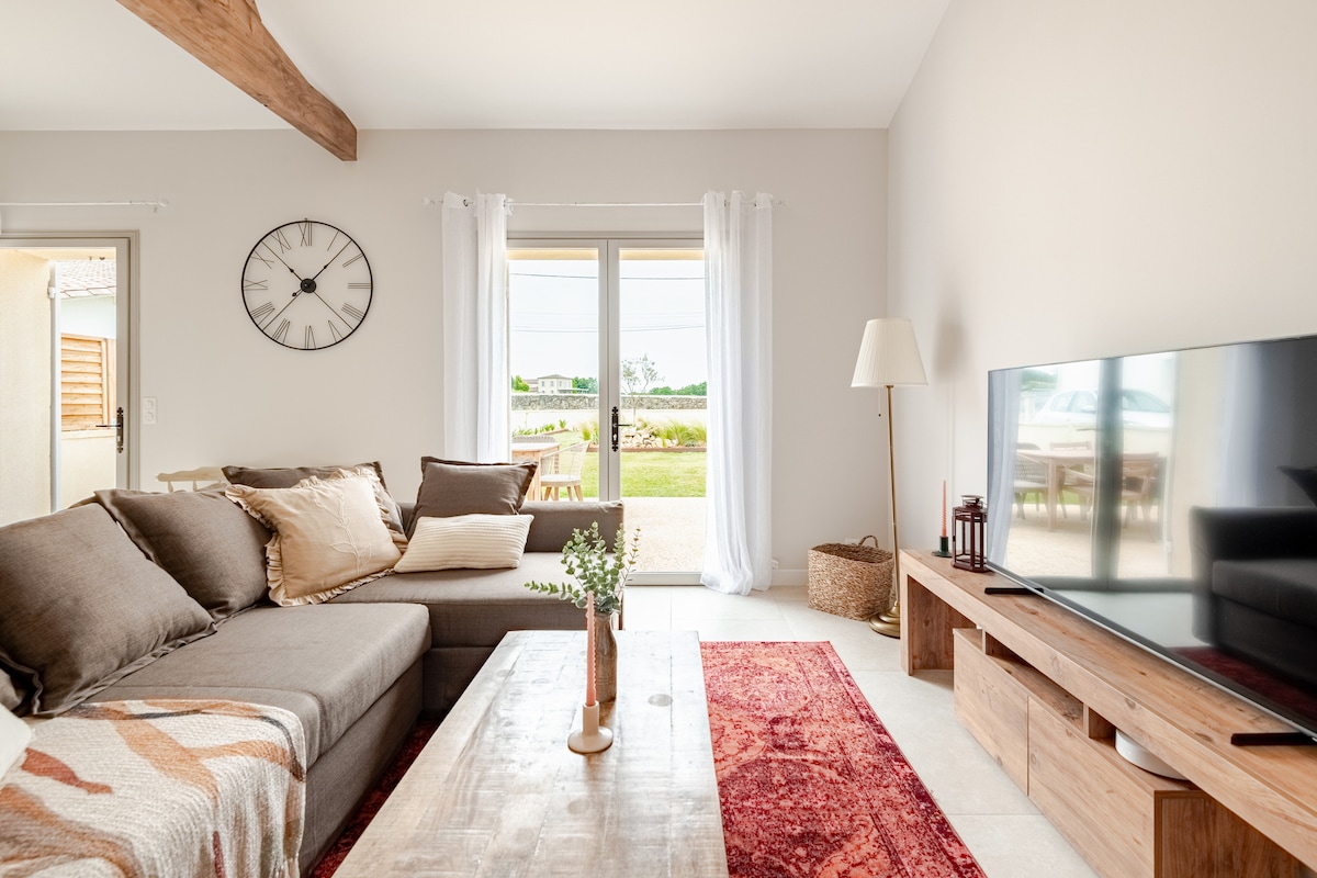 The guest house "Le figuier du clos d'Emilion" adjoins our house, which has been completely renovated and tastefully furnished to offer all modern comforts. They have a fully equipped kitchen and a shared garden with barbecue, plancha and fryer. The fruit trees offer you sunny or shady places and we have installed sunbeds for your comfort. "Le clos d'Emilion" is located 5 minutes from the village of Saint Emilion and a few steps from the Dordogne.