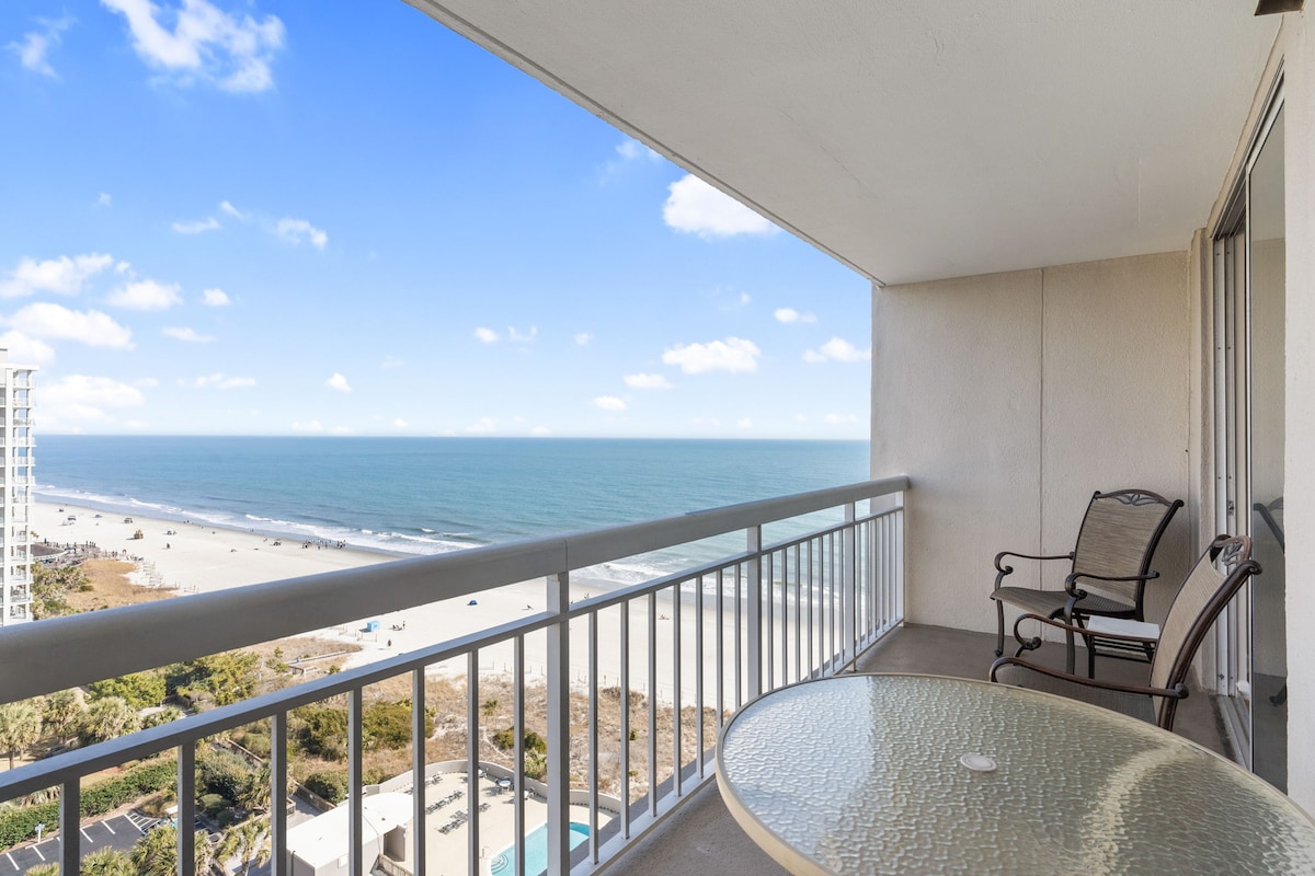 One of the best oceanfront resorts located in the heart of Myrtle Beach "Golden Mile". This 3 Bedroom with 1100 sq ft accommodates up to 10 guests with a full kitchen, balcony with ocean views, stackable washer and dryer. Resort offers numerous amenities: indoor & outdoor pool & sundeck, lazy river, game room, exercise room, shuffle board and more. FULLY RENOVATED IN WINTER 2023/2024. A 5 month reno project that will surely capture your attention and create an enjoyable and fun family vacation.