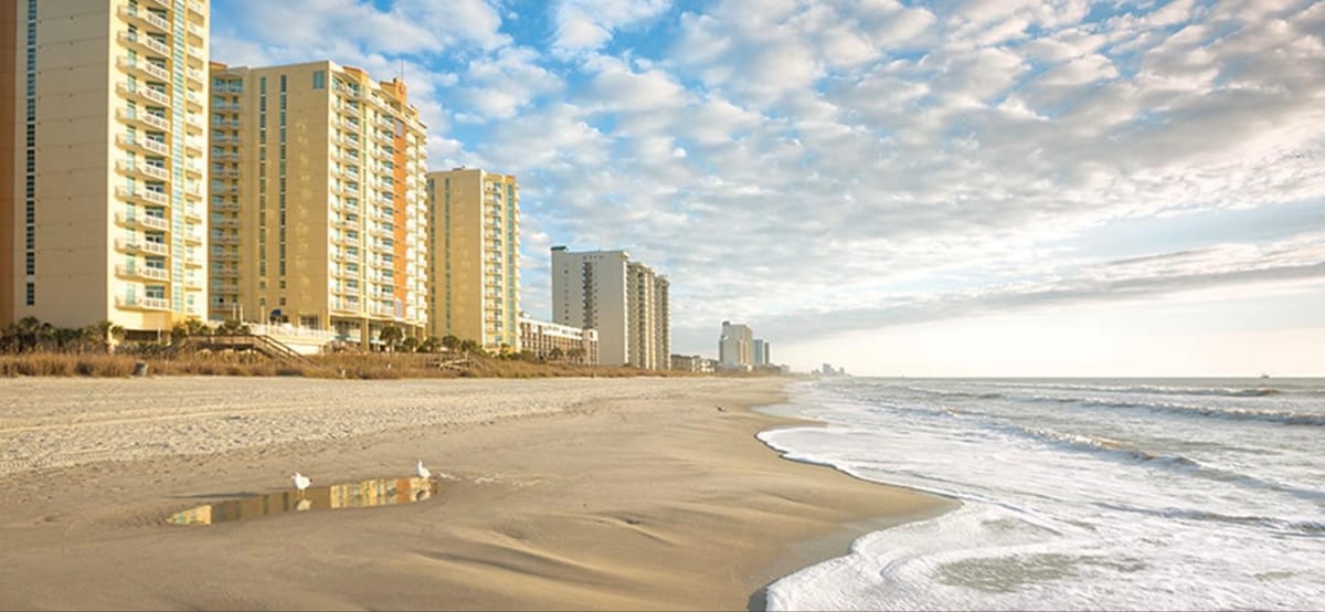 Towers on the Grove rises above the Myrtle Beach shoreline with sweeping ocean views and an unbeatable coastal setting. Located near the lively boardwalk, this modern retreat offers spacious studios and suites, indoor and outdoor pools, a lazy river, fitness center and on site dining. Guests enjoy east access to beaches, shopping, golf, dining and live entertainment. This non-smoking cashless resort delivers a bold style, effortless comfort and pure beachside fun form sunrise to starlight.
