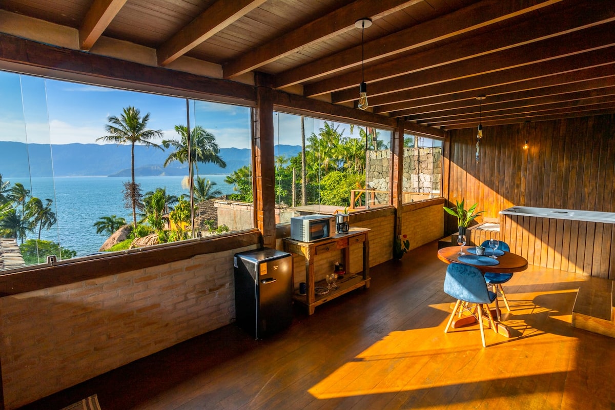 Charmoso refúgio para casais em sítio no meio Mata Atlântica em Borrifos numa costeira no sul da Ilhabela com espetacular vista para o mar . De frente para o mar, proporciona integração completa com a natureza, lugar ideal para contemplar, meditar, observar os passarinhos, o mar.