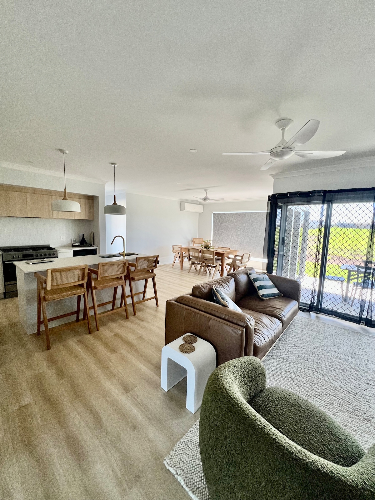 Tully’s is a stylish place to stay, perfect for groups or families. A 5 minute walk to Archie’s beach and a 3 minute drive to Bargara, or 15 to Bundaberg. Tully’s has three spacious bedrooms & two newly renovated bathrooms. It lends its self to being outdoors, with a huge outdoor space and firepit. Enjoy a bbq whilst being around your dog, all good boys welcome outside only. There is air conditioning in two of the bedrooms and in the living room. We hope you love Tully’s as much as we do!