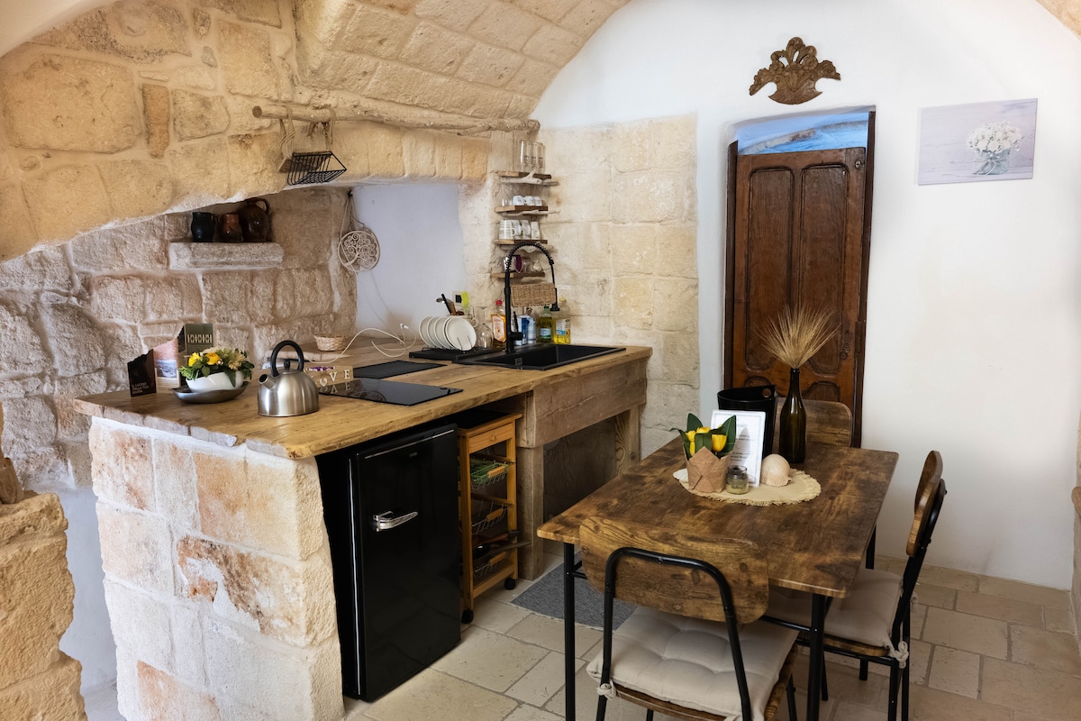 Soggiorna in questa meravigliosa dimora d'epoca di 70 mq. nel centro storico di Polignano a mare con vista mare, gli ambienti sono ricercati, per valorizzarli in questa dimora del 700, abbiamo preferito i materiali tipici del nostro territorio, le pareti e le volte sono realizzate con gli intonaci naturali, i pavimenti e i rivestiti del bagno il protagonista è il cocciopesto, la terrazza con vista mare mozzafiato e centro storico.