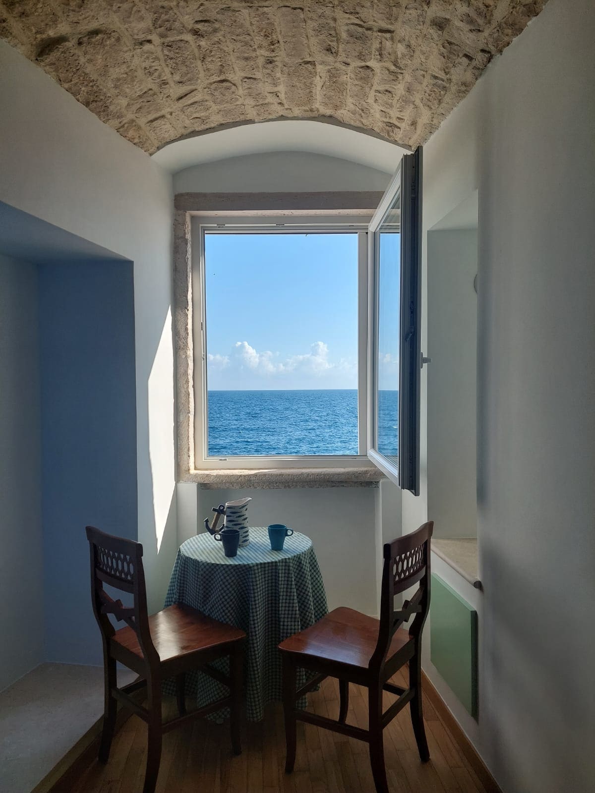 L'alloggio si colloca all'interno del Palazzo Ducale di Giovinazzo e gode di strepitosa vista sul mare Adriatico, il suono delle onde sarà la tua colonna sonora per questo soggiorno. Raffinata soluzione per una vacanza rilassante nel cuore della Città. Intero appartamento openspace di 45mq che unisce profondo rispetto per l'edificio storico con un comfort moderno. Su richiesta gli ospiti possono usufruire di un PARCHEGGIO PRIVATO riservato. CIN IT072022C200081252