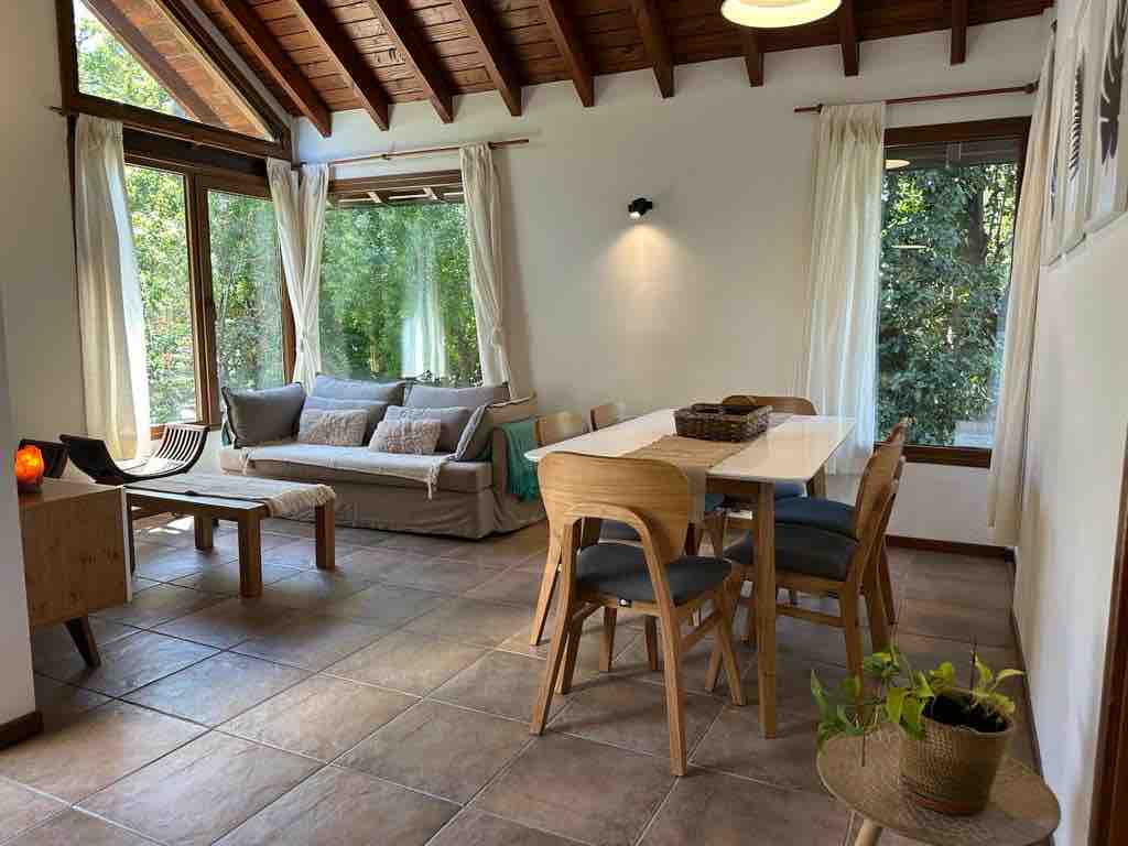 Es una casita monoambiente amplia , luminosa y acogedora. Cuenta con todos los servicios , Internet Wifi fibra óptica , ropa Blanca, toallas y plumones. Está totalmente equipada . Zona de parrilla .Servicio de mucama. La casita está ubicada en un jardín junto con otra casa . No se ve una casa desde la otra. Total privacidad. Un lugar donde se puede gozar de la intimidad, cerca de un centro comercial muy completo : restaurantes, supermercados, farmacias, estación de servicio, etc.