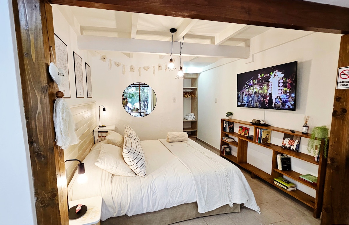 Cabaña monoambiente de 50 m2, moderna, confortable y acogedora ubicada a cuadras del Centro Cívico. Su ubicación única permite total tranquilidad con la comodidad de estar en el centro con acceso caminando a la zona comercial y gastronómica, transporte público y excursiones. Admira el jardín con ejemplares de lavandas, rosas inglesas, hortensias, camelias, y descansa bajo la sombra de un Arrayán. Tu bienestar es nuestra principal preocupación por lo que tomamos todas las medidas a tal fin.