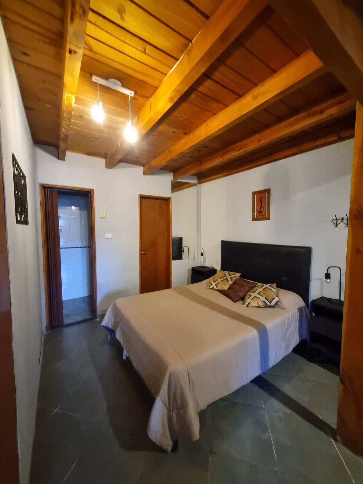 House of 50m2, with private room, bathroom and kitchen - living - dining room. We are located in a quiet neighborhood 3 km from the city center. If necessary, up to 6 people could enter but of course, they will not have the comfort of 4. Two blocks away there are 3 local bus lines that go to and from the city center. We have a garden, own parking, barbecue, washing machine and hydromassage. We can also organize cycling, ski, kayaking and walks through unique places, meditation too.