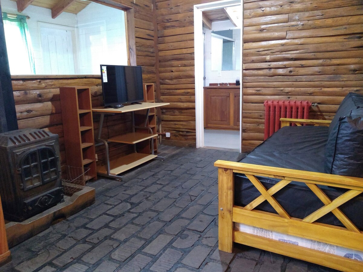 Alojamiento habilitado.Tipo 5. Categoría DAT. Disposición turística N° 153/2017. Ubicada en un ambiente tranquilo y natural, construida en troncos , madera, piedra y adobe, acogedora, por su simpleza y agradable temperatura , fresca en verano y cálida en invierno. Con una habitación amplia en planta alta con excelente vista a los cerros Lopez y Bella Vista y una pequeña habitacion para dos en planta baja con cucheta. ademas un sofa-cama en el living WI-FI de alta velocidad.-Starlink